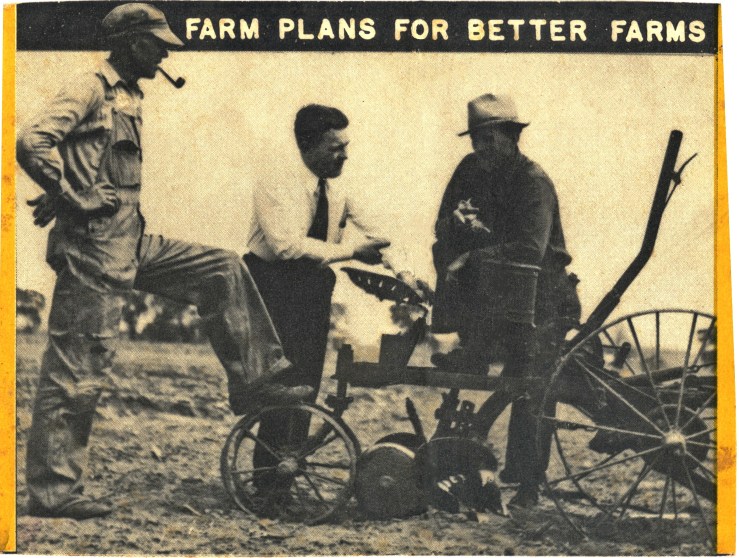 As an experienced farmer and a person familiar with the needs of the agricultural community, my grandfather was hired by the government to serve as an intermediary between local sharecroppers, tenants, and landowning farmers and the governmental agencies set up to assist them. From what I understand, his work was diverse. He served as an educator, advising farmers on the latest scientific discoveries related to agriculture, innovations in industrial equipment and farming practices, as well as on the governmental assistance available to them. He made suggestions regarding selection and rotation of crops, rotation of crops with livestock, and on matters such as irrigation and soil conservation. My grandfather counseled struggling farmers and made applications on their behalf in order to avoid foreclosure on their farms. In some cases, based upon his expertise and recommendation, the government chose to purchase sub-marginal land and to resettle farmers and their families on government-owned group farms. (See article above.)
