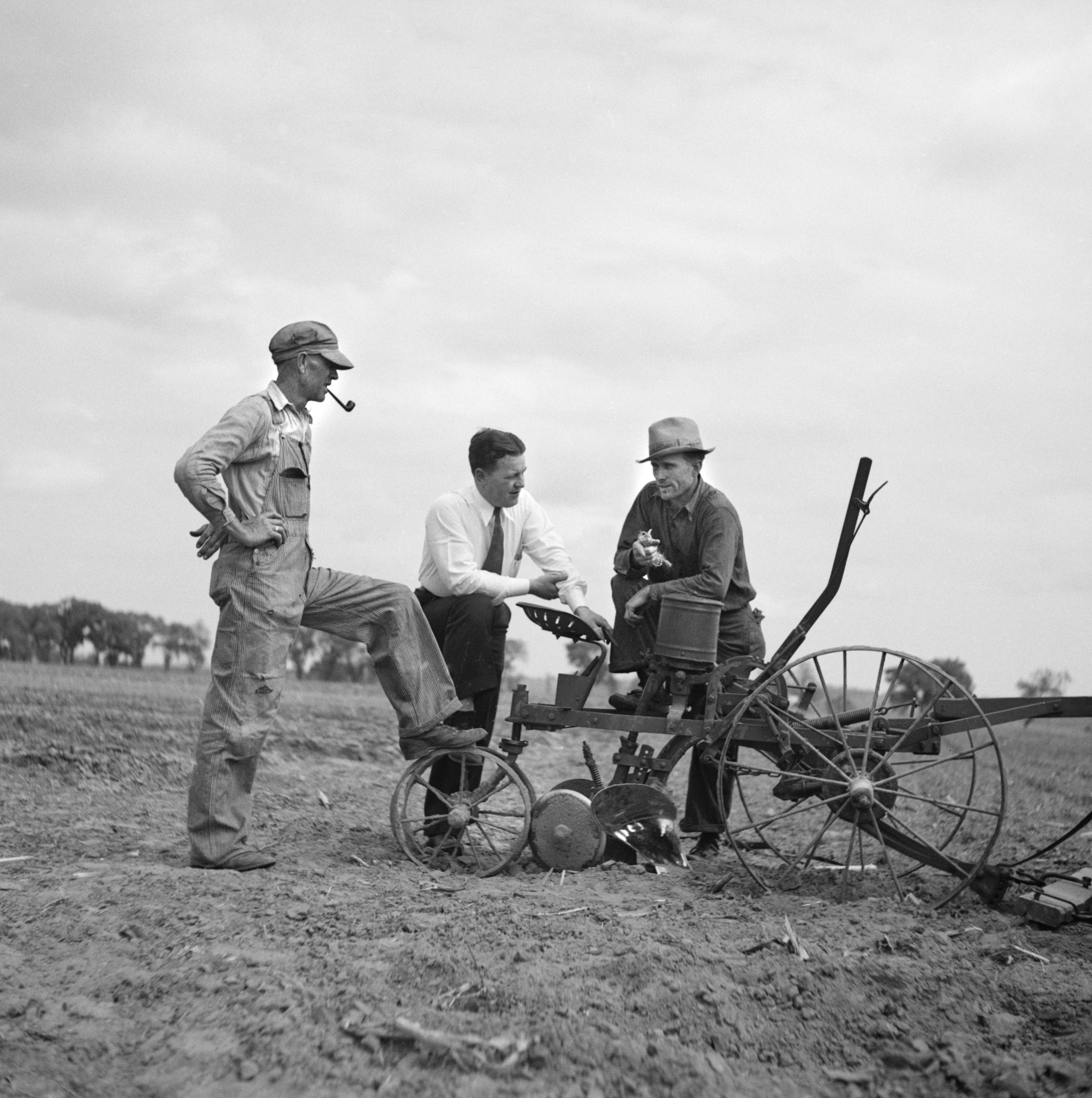 Two Men Discussing Farm Problems with County Supervisor, Jefferson County, Kansas, USA, ©Arthur Rothstein for Farm Security Administration (FSA), May 1936