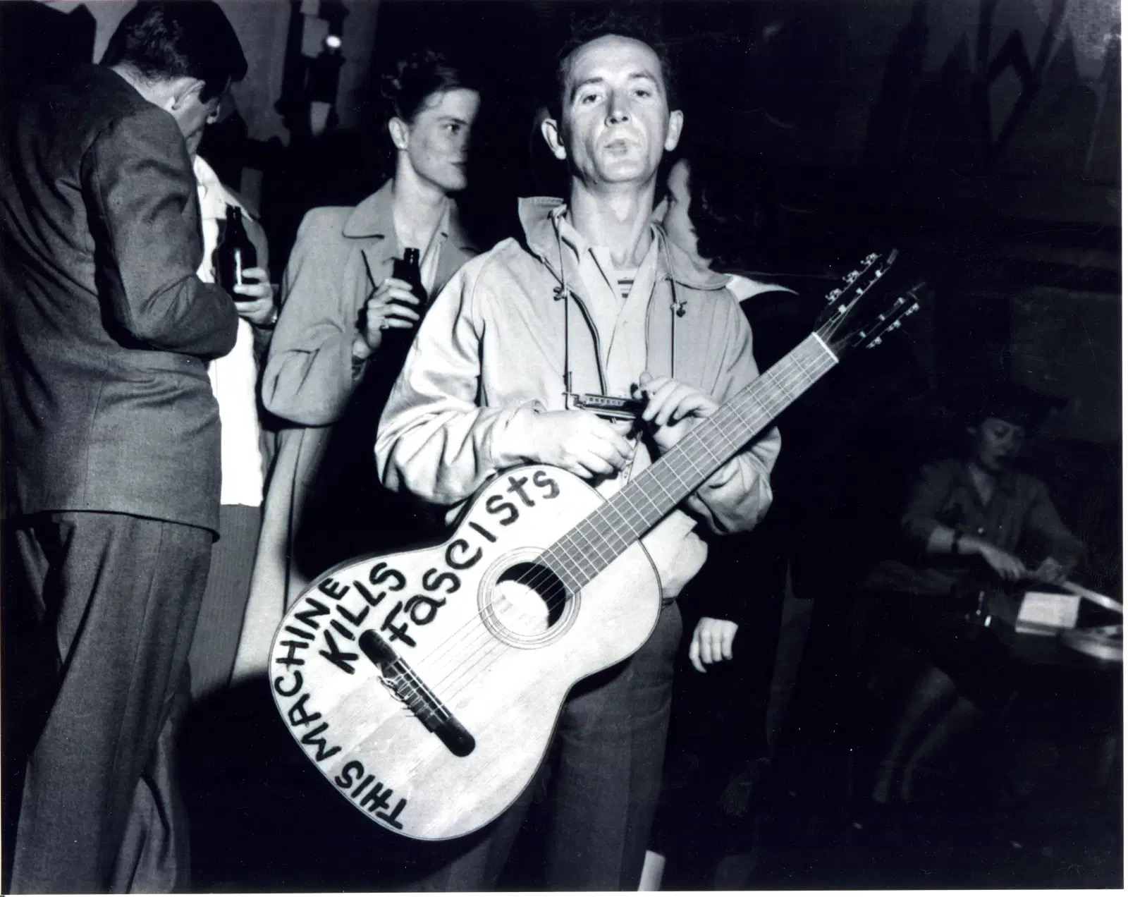 As a young man, Woody’s family joined the “Okies” and “Arkies” and Kansans who packed their meager belongings for, hopefully, better lives elsewhere. These impoverished families saw their homes, crops, livestock, and livelihood literally blow away in the devastating dust storms that plagued our country’s midsection, rendering it uninhabitable in the 1930s. Nineteen years old, this was the beginning of what would be a primarily migrant way of life for Woody and his family, his travels taking him to Los Angeles, later to New York City, and to countless places in between. His vagabond existence, as well as the Dust Bowl and the Great Depression, informed his songs. His music became a voice for migrant workers, illegal immigrants, manual laborers, and victims of civil injustice. His songs continue to be used in protests and resistance movements to this day.